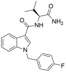 - ↑ Banister SD, Moir M, Stuart J, Kevin RC, Wood KE, Longworth M, et al. (September 2015). "Pharmacology of Indole and Indazole Synthetic Cannabinoid Designer Drugs AB-FUBINACA, ADB-FUBINACA, AB-PINACA, ADB-PINACA, 5F-AB-PINACA, 5F-ADB-PINACA, ADBICA, and 5F-ADBICA". ACS Chemical Neuroscience. 6 (9): 1546–59. doi:10.1021/acschemneuro.5b00112. PMID 26134475.