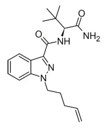 - ↑ Pike E, Grafinger KE, Cannaert A, Ametovski A, Luo JL, Sparkes E, et al. (July 2021). "Systematic evaluation of a panel of 30 synthetic cannabinoid receptor agonists structurally related to MMB-4en-PICA, MDMB-4en-PINACA, ADB-4en-PINACA, and MMB-4CN-BUTINACA using a combination of binding and different CB1 receptor activation assays: Part I-Synthesis, analytical characterization, and binding affinity for human CB1 receptors". Drug Testing and Analysis. 13 (7): 1383–1401. doi:10.1002/dta.3037. PMID 33787091.