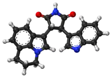 Tivantinib (ARQ197; by Arqule, Inc.) is an experimental small molecule anti-cancer drug. It is a bisindolylmaleimide that binds to the dephosphorylated MET kinase in vitro. (MET is a growth factor receptor.) Tivantinib is being tested clinically as a highly selective MET inhibitor.[1] However, the mechanism of action of tivantinib is still unclear.