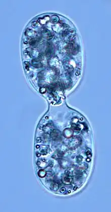 | Dividing Achromatium, light micrograph of living cells. | |