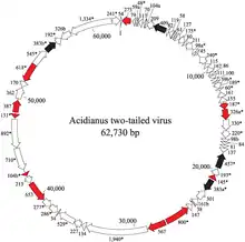 Bicaudaviridae is a family of hyperthermophilic archaeal viruses. Members of the genus Acidianus serve as natural hosts. There is only one genus, Bicaudavirus, and one species, Acidianus two-tailed virus, in this family.[1][2][3] However, Sulfolobus tengchongensis spindle-shaped viruses 1 and 2 (STSV1 and STSV2) are regarded to belong to this family also.[4]