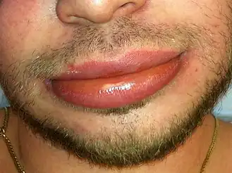 Acquired C1 esterase inhibitor deficiency, also referred to as acquired angioedema (AAE), is a rare medical condition that presents as body swelling that can be life-threatening and manifests due to another underlying medical condition.[1]:153 The acquired form of this disease can occur from a deficiency or abnormal function of the enzyme C1 esterase inhibitor (C1-INH). This disease is also abbreviated in medical literature as C1INH-AAE. This form of angioedema is considered acquired due to its association with lymphatic malignancies, immune system disorders, or infections. Typically, acquired angioedema presents later in adulthood, in contrast to hereditary angioedema which usually presents from early childhood and with similar symptoms.[2]