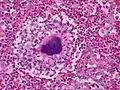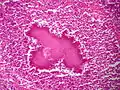 The disease is characterised by the formation of painful abscesses in the mouth, lungs,[3][4] breast,[5] or gastrointestinal tract.[2] Actinomycosis abscesses grow larger as the disease progresses, often over months. In severe cases, they may penetrate the surrounding bone and muscle to the skin, where they break open and leak large amounts of pus, which often contains characteristic granules filled with progeny bacteria. These granules are often called "sulfur granules" due to their yellow appearance, although they may also be white, gray or brown.[6]