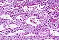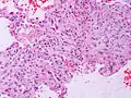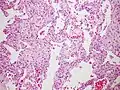 Micrograph of diffuse alveolar damage, the histologic correlate of acute interstitial pneumonitis. H&E stain.