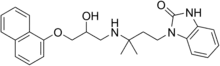 The reaction between 1-naphthyl glycidyl ether (1) and 3-(3-amino-3-methylbutyl)-1H-benzimidazol-2-one (2) gives adimolol (3).[2][3]