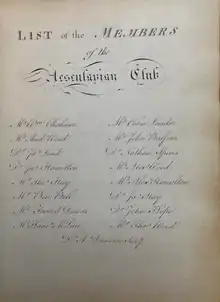 The Aesculapian Club of Edinburgh is one of the oldest medical dining clubs in the world. It was founded in April 1773 by Dr. Andrew Duncan.[1][2][3] Membership of the club is limited to 11 Fellows of the Royal College of Physicians of Edinburgh and 11 Fellows of the Royal College of Surgeons of Edinburgh. 'Extraordinary Membership' is given to members aged over 70 years. The club was established during the Scottish Enlightenment to encourage convivial relations between Fellows of the two Colleges and to stimulate intellectual discussion. The Club dinners are held in the New Library of the Royal College of Physicians of Edinburgh on the 2nd Friday of March and October each year.[4] The principal guest at each dinner is invited to give a short talk on a non-medical subject and this is followed by a round-table discussion.[4][5]