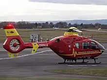 Emergency air ambulances are generally helicopter based, and used to respond to medical emergencies in support of local ambulance services. In England, Wales, and Northern Ireland, all of these services are charitably funded, and either directly owned by the charity, or operated under contract with a private provider.[3] The ambulance staff and doctors crewing these flights are generally seconded from the local NHS ambulance service and NHS hospitals. In Scotland, there is the only publicly-funded air ambulance service, with the Scottish Ambulance Service operating two Airbus Helicopters H145 helicopters and two fixed wing aircraft in this role, alongside two charity-funded Eurocopter EC135 helicopters, operated by Scotland's Charity Air Ambulance.