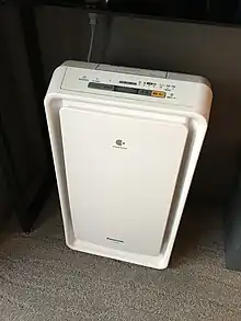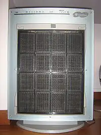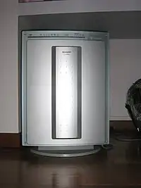 Other aspects of some air cleaners are hazardous gaseous by-products from ozone-generating units,[36] noise level, frequency of filter replacement, electrical consumption, and visual appeal. Ozone production is typical for air ionizing purifiers. A high concentration of ozone is dangerous, although most air ionizers produce low amounts, low rates of ozone reduce the effectiveness. A build up can cause detrimental health effects especially for vulnerable people.[37] The noise level of a purifier can often be obtained through a customer service department and is usually reported in decibels (dB). The noise levels for most purifiers can vary and may be dependent on fan speed.[38] Frequency of filter replacement and electrical consumption are the major operation costs for any purifier. There are many types of filters; some can be cleaned by water, by hand or by vacuum cleaner, while others need to be replaced every few months or years.[39] Sometimes suitable filters are only sold by the manufacturer for a high cost, some have DRM control so only replacement filters authorised by the manufactuere can be used.[40] In the United States, some purifiers are certified as Energy Star and are energy efficient.