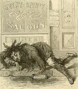 In 1892 the United States District Court for the District of Montana found that beer was not included in the law's specification that "spirituous liquors" (which had included wine since 1834) were not to be sold or given to Indians. The result was a sudden introduction of beer saloons into reservations across the west. The agent in Muskegee, Indian Territory (Arkansas), reported "the opening of beer saloons in every village in the agency, almost without exception. The Indian and Federal laws were openly, flagrantly, and defiantly violated, drunkenness and its train of evils held full sway."[93] Patent medicines such as Jamaica ginger and cooking flavors such as lemon extract containing a high alcohol content were also being sold in large quantities on reservations.[22] The 1893 amendment to the law prohibited "ardent spirits, ale, beer, wine or intoxicating liquors or liquors of whatever kind," punishable with imprisonment for not more than two years and fines of not more than $300 for each offense.[94] An 1897 amendment to the Indian Appropriations Act (29 Stat. at L. 506, chap. 109), provides: