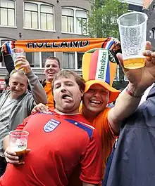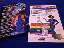 The alcohol industries have marketed products directly to the LGBT+ community. In 2010, of the sampled parades that listed sponsors, 61% of the prides were sponsored by the alcohol industry.[56] A study found that alcohol consumption within LGBTQ+ communities presents a challenge for health promotion efforts. The positive association with alcohol within these communities makes it harder to reduce alcohol-related health issues.[57]