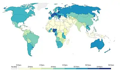- ↑ "Alcohol consumption per person". Our World in Data. Archived from the original on 16 March 2020. Retrieved 15 February 2020.