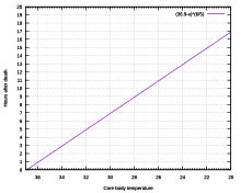 - ↑ Kaliszan, M. (20 May 2005). "Verification of the exponential model of body temperature decrease after death in pigs". Experimental Physiology. 90 (5): 727–738. doi:10.1113/expphysiol.2005.030551. PMID 15944204. S2CID 22096083.