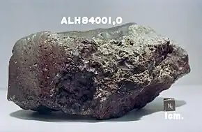 - ↑ "The ALH84001 Meteorite". NASA. Jet Propulsion Laboratory. Retrieved 2014-05-07.