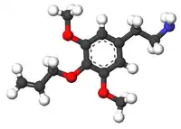 Allylescaline (4-allyloxy-3,5-dimethoxyphenethylamine) is a lesser-known psychedelic drug. It is closely related in structure to mescaline. Allylescaline was first synthesized by Otakar Leminger in 1972.[1] The compound was later synthesized by Alexander Shulgin and further described in his book PiHKAL.[2] The dosage range is listed as 20–35 mg, and the duration 8–12 hours.[2] Allylescaline produces an entactogenic warmth, an entheogenic effect, and a feeling of flowing energy. Very little data exists about the pharmacological properties, metabolism, and toxicity of allylescaline.