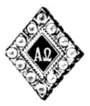 Alpha Zeta Gamma's badge is diamond-shaped with the Greek letters ΑΩ in gold on a black enamel background.[6] There is a blue sapphire at the top of the diamond and a white sapphire at the bottom.[6] The rest of the border is outlined in ten pearls.[6] The fraternity also has a pledge pin that is a diamond with black enamel on the top half and gold enamel on the bottom half.[6]