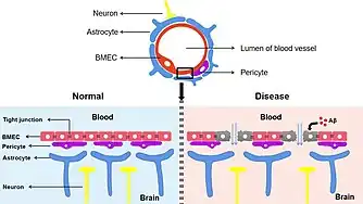 - 1 2 3 Sweeney, Melanie D.; Sagare, Abhay P.; Zlokovic, Berislav V. (March 2018). "Blood–brain barrier breakdown in Alzheimer disease and other neurodegenerative disorders". Nature Reviews Neurology. 14 (3): 133–150. doi:10.1038/nrneurol.2017.188. ISSN 1759-4758. PMC 5829048. PMID 29377008.
