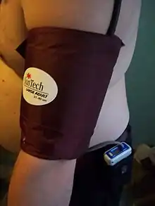 Ambulatory blood pressure, as opposed to office blood pressure and home blood pressure,[1] is the blood pressure over the course of the full 24-hour sleep-wake cycle. Ambulatory blood pressure monitoring (ABPM) measures blood pressure at regular intervals throughout the day and night. It avoids the white coat hypertension effect in which a patient's blood pressure is elevated during the examination process due to nervousness and anxiety caused by being in a clinical setting. ABPM can also detect the reverse condition, masked hypertension, where the patient has normal blood pressure during the examination but uncontrolled blood pressure outside the clinical setting, masking a high 24-hour average blood pressure.[2] Out-of-office measurements are highly recommended as an adjunct to office measurements by almost all hypertension organizations.