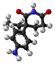 AG is a nonsteroidal compound, specifically a glutarimide, and is a derivative of glutethimide.[3][12][7] It is also known by its chemical names 2-(4-aminophenyl)-2-ethylglutarimide and 2-(aminophenyl)-3-ethylpiperidine-2,6-dione.[26][7] Aside from glutethimide, AG is structurally related to rogletimide (pyridoglutethimide) and thalidomide, as well as amphenone B, metyrapone, and mitotane.[10][27][28][29][12]