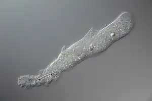Amoeba proteus is a large species of amoeba closely related to another genus of giant amoebae, Chaos. As such, the species is sometimes given the alternative scientific name Chaos diffluens.[1][2]