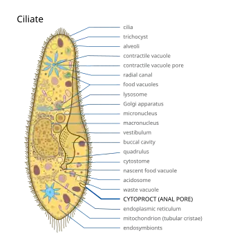 The anal pore or cytoproct is a structure in various single-celled eukaryotes where waste is ejected after the nutrients from food have been absorbed into the cytoplasm.[1]