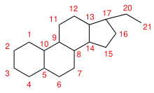 21) steroids, known as pregnanes. A 21-carbon steroid is a steroid molecule with 21 carbon atoms,[28] hence, their chemical formula contains C