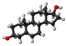 Androstenediol possesses potent estrogenic activity, similarly to DHEA and 3β-androstanediol.[2] It has approximately 6% and 17% of the affinity of estradiol at the ERα and ERβ, respectively.[3] Although androstenediol has far lower affinity for the ERs compared to the major estrogen estradiol, it circulates at approximately 100-fold higher concentrations, and so is thought may play a significant role as an estrogen in the body.[4]