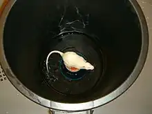 Irritancy can be measured using the Draize test, where a test substance is applied to an animal's eyes or skin, usually an albino rabbit. For Draize eye testing, the test involves observing the effects of the substance at intervals and grading any damage or irritation, but the test should be halted and the animal killed if it shows "continuing signs of severe pain or distress".[227] The Humane Society of the United States writes that the procedure can cause redness, ulceration, hemorrhaging, cloudiness, or even blindness.[228] This test has also been criticized by scientists for being cruel and inaccurate, subjective, over-sensitive, and failing to reflect human exposures in the real world.[229] Although no accepted in vitro alternatives exist, a modified form of the Draize test called the low volume eye test may reduce suffering and provide more realistic results and this was adopted as the new standard in September 2009.[230][231] However, the Draize test will still be used for substances that are not severe irritants.[231]