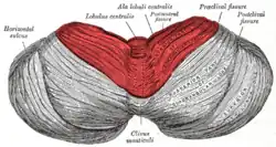 The anterior lobe of cerebellum is one of the lobes of the cerebellum responsible for mediating unconscious proprioception. Inputs into the anterior lobe of the cerebellum are mainly from the spinal cord.[1] It is sometimes equated to the "paleocerebellum".[2]