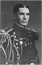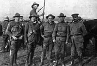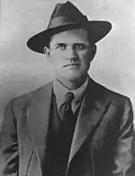 Professor James H. Brewster, a faculty attorney with the University of Colorado who was investigating the strike for Governor Ammons, was aware that militia Lieutenant Karl Linderfelt was guilty of abuse and beatings of innocent citizens, including a small Greek boy "whose head was split open".[38][39] Professor Brewster sent a telegram to Governor Ammons requesting Linderfelt's removal. No action was taken. In a subsequent face to face meeting with the governor, three months prior to the Ludlow Massacre, Brewster again insisted that Linderfelt be removed, but again, Ammons declined. In later testimony, Professor Brewster stated that Linderfelt was the reason for the massacre.[38] On the day that the Ludlow Massacre occurred, Lieutenant Karl Linderfelt, commander of one of two companies of the Colorado National Guard, had Louis Tikas, leader of the Ludlow tent colony of striking miners, at gunpoint. Tikas was unarmed, and the miners would later explain that he approached the militia to ask them to stop shooting.[40] While two militiamen held Tikas, Linderfelt broke a rifle butt over his head. Tikas and two other captured miners were later found shot dead. Tikas had been shot in the back.[41] Their bodies lay along the Colorado and Southern railroad tracks for three days in full view of passing trains. The militia officers refused to allow them to be moved until a local of a railway union demanded the bodies be taken away for burial. A court martial found Lieutenant Linderfelt guilty of assaulting Tikas with a Springfield rifle, "but attaches no criminality thereto. And the court does therefor acquit him."[42]