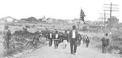 The unprovoked attack was similar to another event, which had occurred twenty-three years earlier in Pennsylvania. During the Lattimer massacre, nineteen unarmed immigrant coal miners were suddenly gunned down at the Lattimer mine near Hazleton, Pennsylvania, on September 10, 1897.[18][19] The miners, mostly of Polish, Slovak, Lithuanian and German ethnicity, were shot and killed by a Luzerne County sheriff's posse. In this group as well, all of the miners had been shot in the back.[20][21] The shooting followed a brief tussle over the American flag carried by the miners. Their only crime was asserting their right to march in the face of demands that they disperse.
