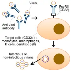 - ↑ Takada A, Kawaoka Y (2003). "Antibody-dependent enhancement of viral infection: molecular mechanisms and in vivo implications". Reviews in Medical Virology. 13 (6): 387–98. doi:10.1002/rmv.405. PMID 14625886. S2CID 9755341.