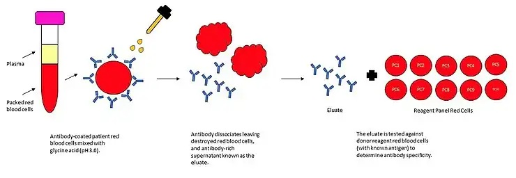 - ↑ "Glossary: Elution - Blood Bank Guy Glossary". Blood Bank Guy. Retrieved 2023-04-17.