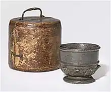 - ↑ "Antimony cup with leather case, Europe, 1601-1700". Archived from the original on 2012-12-27. Retrieved 2010-10-12.