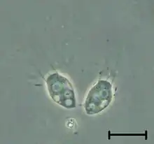 - ↑ Hehenberger, Elisabeth; Tikhonenkov, Denis V.; Kolisko, Martin; Campo, Javier del; Esaulov, Anton S.; Mylnikov, Alexander P.; Keeling, Patrick J. (2017). "Novel Predators Reshape Holozoan Phylogeny and Reveal the Presence of a Two-Component Signaling System in the Ancestor of Animals". Current Biology. 27 (13): 2043–2050.e6. doi:10.1016/j.cub.2017.06.006. PMID 28648822.
