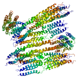 Apolipoprotein A-II is a protein that in humans is encoded by the APOA2 gene.[5] It is the second most abundant protein of the high density lipoprotein particles. The protein is found in plasma as a monomer, homodimer, or heterodimer with apolipoprotein D. ApoA-II regulates many steps in HDL metabolism, and its role in coronary heart disease is unclear. [6] Remarkably, defects in this gene may result in apolipoprotein A-II deficiency or hypercholesterolemia.[7]