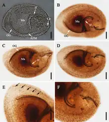 - ↑ Da Silva Paiva, T; Do Nascimento Borges, B; Da Silva-Neto, I. D. (2013). "Phylogenetic study of Class Armophorea (Alveolata, Ciliophora) based on 18S-rDNA data". Genetics and Molecular Biology. 36 (4): 571–585. doi:10.1590/S1415-47572013000400017. PMC 3873190. PMID 24385862.