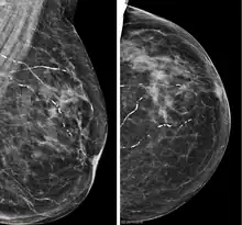 | Right breast mammograms showing several calcified arterioles. Patient 94 years old. | |