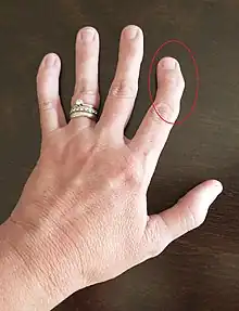 Osteoarthritis in the left hand index finger of a 63-year-old woman