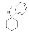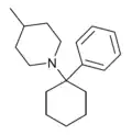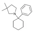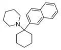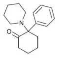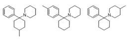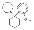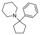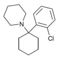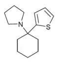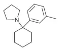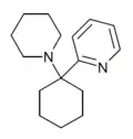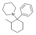 - ↑ Iorio MA, Tomassini L, Mattson MV, George C, Jacobson AE (August 1991). "Synthesis, stereochemistry, and biological activity of the 1-(1-phenyl-2-methylcyclohexyl)piperidines and the 1-(1-phenyl-4-methylcyclohexyl)piperidines. Absolute configuration of the potent trans-(-)-1-(1-phenyl-2-methylcyclohexyl)piperidine". Journal of Medicinal Chemistry. 34 (8): 2615–23. doi:10.1021/jm00112a041. PMID 1875352.