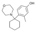 - ↑ Ahmadi A, Khalili M, Hajikhani R, Naserbakht M (2011). "Synthesis and determination of acute and chronic pain activities of 1-[1-(4-methylphenyl) (cyclohexyl)] morpholine as a new phencyclidine derivative in rats". Arzneimittel-Forschung. 61 (2): 92–7. doi:10.1055/s-0031-1296173. PMID 21428243. S2CID 8094521.