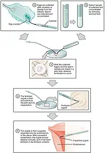 {{cite web}}: CS1 maint: multiple names: authors list (link) - ↑ "In vitro fertilization (IVF): MedlinePlus Medical Encyclopedia". medlineplus.gov. Retrieved 2018-11-07.