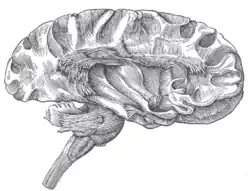 1. 1 2 Standring, Susan (2005). Gray's Anatomy: The Anatomical Basis of Clinical Practice (39th ed.). Churchill Livingstone. pp. 411. ISBN 9780443071683. The nerve fibres which make up the white matter of the cerebral hemispheres are categorized on the basis of their course and connections. They are association fibres, which link different cortical areas in the same hemisphere; commissural fibres, which link corresponding cortical areas in the two hemispheres; or projection fibres, which connect the cerebral cortex with the corpus striatum, diencephalon, brain stem and the spinal cord.