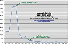 - Endemic measles declared eradicated from Australia in February 2009.[4]