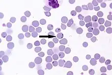 Babesia divergens is an intraerythrocytic parasite, transmitted by the tick Ixodes ricinus.[1] It is the most common cause of human babesiosis.[2] It is the main agent of bovine babesiosis, or "redwater fever", in Europe. Young cattle are less susceptible. The current emphasis in Europe on sustainable agriculture and extensification is likely to lead to an increase in vector tick populations with increased risk of infection.[1] B. divergens is also prevalent (infection rates of 11-23%) in cottontail rabbits on Nantucket Island, Massachusetts, USA.[3]