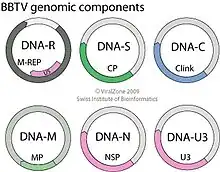 Babuvirus is a genus of viruses, in the family Nanoviridae.[1] Musa species serve as natural hosts. There are three species in this genus. Diseases associated with this genus include: stunting, severe necrosis and early plant death. BBTV induces banana bunchy top disease (BBTD).[1][2][3]