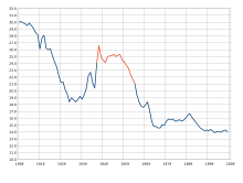 Until the 1960s, the Aboriginal population rose steadily. The child mortality rate started to decline steadily in the 1960s, due to the increased access to health care. Throughout the 1960s, the fertility rate remained high, resulting in the Aboriginal baby boom peaking in 1967 – about ten years after the postwar baby boom in Canada.[5]