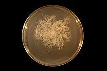 | Bacillus mycoides growing clockwise on an agar plate. | |