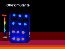 The S. elongatus luciferase reporter system was used to screen for clock gene mutants, of which many were isolated.[23] The figure shows a few of the many mutants that were discovered. These mutants were used to identify the core KaiA, KaiB, KaiC clock genes.[1]