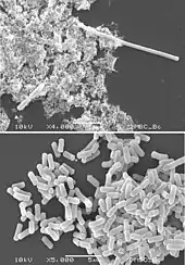 Oxidative stress, nutrient limitation, DNA damage and antibiotic exposure are examples of stressors that cause bacteria to halt septum formation and cell division. Filamentous bacteria have been considered to be over-stressed, sick and dying members of the population. However, the filamentous members of some communities have vital roles in the population's continued existence, since the filamentous phenotype can confer protection against lethal environments.[3] Filamentous bacteria can be over 90 μm in length[4] and play an important role in the pathogenesis of human cystitis. Filamentous forms arise via several different mechanisms.[5]