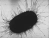They are long, sticky filaments, as shown here covering this E. coli bacterium[36]